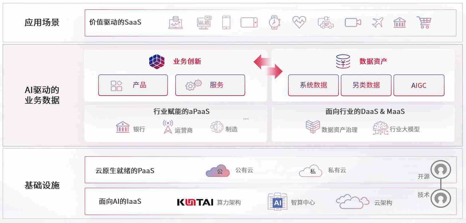 数字时代,,,,围绕企业数字化转型的关键要素,,,Z6尊龙数码开创性的提出数云融合战略和技术体系框架,,着力在云原生、、数字原生、、AI原生和信创产业上架构产品和服务能力,,为处在不同数字化转型阶段的快消零售、、、汽车、、、金融、、医疗、、政企、、、教育、、运营商等行业客户提供泛在的敏捷IT能力和融合的数据驱动能力,,,,构建跨界融合创新的数字业务场景和新业务模式,,,助力企业级客户建立面向未来的核心能力和竞争优势,,全面推动社会的数字化、、、、智能化转型升级。。